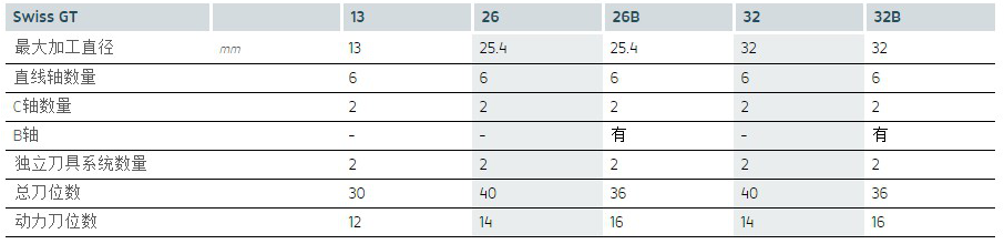 Swiss GT 26 和Swiss GT 32 可安裝高達(dá)40把刀具,包括14把動力刀,而Swiss GT 13 可配備多達(dá)30把刀具,包含12把動力刀。Y軸大幅提高了背軸加工的能力,無需二次加工即可完成某些復(fù)雜工件的生 產(chǎn)。